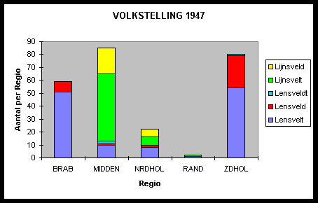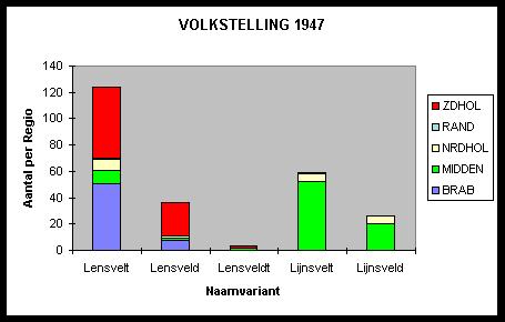 Opmerkelijk in dit deelonderzoek is verder dat er in 1947, ruwweg genomen, 'n concentratie van 50-70 Lensvelten is in Brabant, 50-70 Lensvelten in Zuid-Holland en 50-70 Lijnsvelten op de Veluwe. In Brabant heeft de stamvader gezorgd voor dat getal aan nakomelingen. Omstreeks midden 18e eeuw trekt 'n Lensvelt naar Zuid-Holland (zie: Zuidhollandse-tak), welke aldaar voor ongeveer eenzelfde aantal nazaten zorgt.