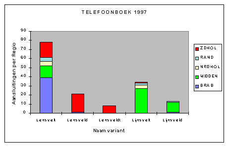 De verhouding tussen de diverse regios is niet significant gewijzigd. Het aandeel van Rand-Nederland is wat groter geworden. Meest opvallend is wellicht nog de ook hier duidelijk zichtbare toename van de naamvariant Lensveldt (met DT) in de regio Zuid-Holland.